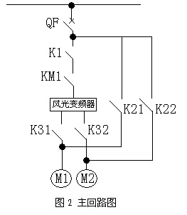 根據(jù)用戶要求,現(xiàn)場共兩套系統(tǒng),配置兩臺風(fēng)機,配置一套變頻器,即一臺變頻器拖動二臺電機,采用一拖二方式。旁路系統(tǒng)由1個高壓真空接觸器KM1和5個高壓隔離開關(guān)K1、K21、K22、K31、K32組成。要求K21不能和K1、K31同時閉合,K22不能和K1、K32同時閉合,在電氣上實現(xiàn)互鎖。K1與K31閉合,K21斷開,1#電機變頻運行;K1與K32閉合,K22斷開,2#電機變頻運行。K1與K31斷開,K21閉合,1#電機工頻運行;K1與K32斷開,K22閉合,2#電機工頻運行。