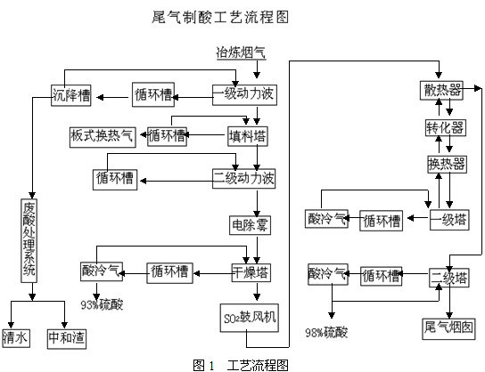 吐魯番工企礦冶有限公司銅冶煉廠,是新疆維吾爾自治區(qū)吐魯番地區(qū)較大的國有企業(yè),由于國家對銅冶煉尾氣處理的要求越來越高,公司領(lǐng)導(dǎo)在綜合考慮各方面的因素后,認(rèn)為單純處理尾氣,還不如變廢為寶,將尾氣凈化處理后,將其中的SO2轉(zhuǎn)變成硫酸,這樣即處理了尾氣,達(dá)到國家尾氣排放標(biāo)準(zhǔn),又派生出新產(chǎn)品硫酸,可以獲得新的經(jīng)濟(jì)效益,一舉兩得,是這次設(shè)備改造及尾氣處理的雙重收益。