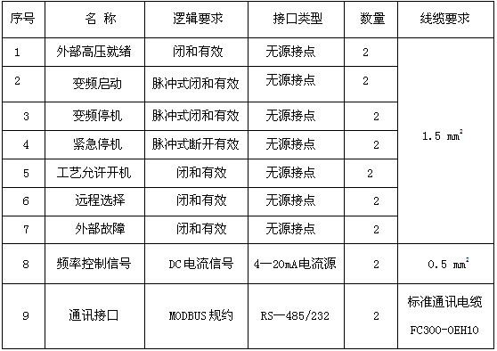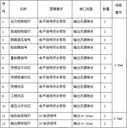 表1、用戶DCS與變頻器的接口: