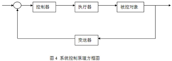 根據(jù)工藝流程,在本系統(tǒng)中,被控對象是核心,被測信號經(jīng)變送器轉換成標準信號(4-20mA或0-5V),與給定值進行比較,并對結果進行調(diào)節(jié)運算,以輸出作為控制信號,經(jīng)執(zhí)行器實現(xiàn)對被控對象的調(diào)節(jié)。控制系統(tǒng)方框圖如圖4所示: