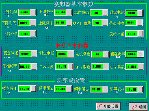 本地設置:通過薄膜式液晶屏設置運行頻率。