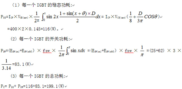 (5)每一IGBT(兩個(gè)橋臂)總功耗為: