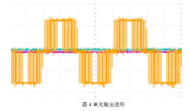 功率單元結(jié)構(gòu)上完全一致,模塊化的結(jié)構(gòu)設(shè)計,使得功率單元可以任意互換,單元的外部接口只有兩個或四個輸出端子及兩個光纖插口,這使得維護和檢修更簡單。每個單元通過IGBT逆變橋?qū)崿F(xiàn)正弦PWM控制,可得到如圖4所示的單元輸出波形。