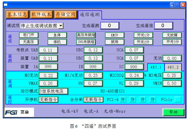 柜門人機界面還提供了裝置未上高壓時,通訊信息的遙信遙測驗證功能,方便現(xiàn)場調(diào)試人員對通信數(shù)據(jù)通道及數(shù)據(jù)進行測試(如圖6所示)。