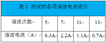 表1 測試的各項諧波電流統(tǒng)計