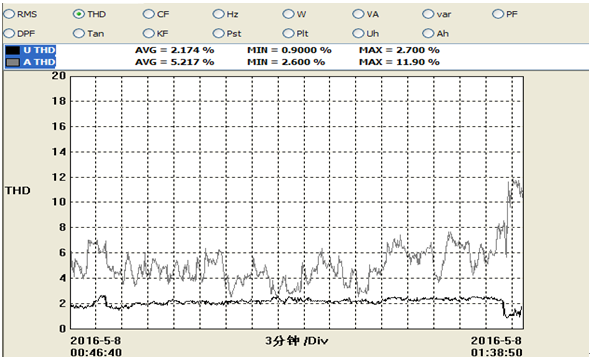 圖3新風光SVG投運前電壓畸變率和諧波電流含量