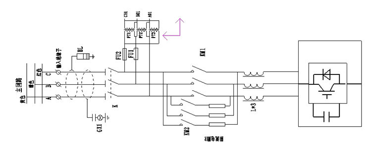 (9)主電路采用IGBT組成的H橋功率單元串聯(lián)結(jié)構(gòu),每組由多個(gè)相同的功率單元組成,整機(jī)輸出由PWM波形疊加而成的階梯波,逼近正弦,經(jīng)輸出電抗器濾波后正弦度好。