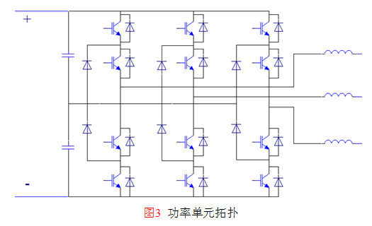2.3 功率單元拓?fù)?br/>逆變裝置的單元內(nèi)部采用三電平結(jié)構(gòu)電路,單元主電路如圖3所示。