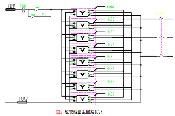 (1)逆變裝置主要是根據(jù)母線電壓變化實(shí)現(xiàn)自動(dòng)并網(wǎng)、逆變吸收及逆變電流調(diào)節(jié)等功能。
