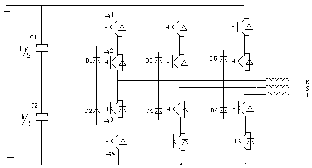 當(dāng)裝置功率大時,需要這樣幾個主電路并聯(lián),并聯(lián)時需考慮均流與環(huán)流及其相位問題,同時采用二極管鉗位的三電平電路需考慮直流端電容中點電位不平衡問題,在軟件PWM波生成電路中尤其注重此點。