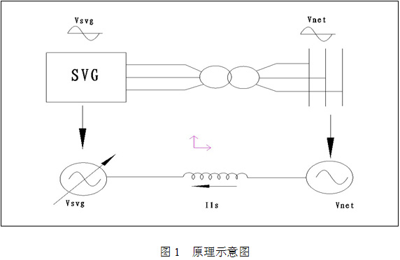 在交流電路中,電壓和電流的相位有三種情況,當(dāng)負(fù)載是純電阻特性時,電壓和電流相位相同;當(dāng)負(fù)載是(或含有)電感特性時,電壓相位超前電流相位;當(dāng)負(fù)載是(或含有)容性特性時,電壓相位滯后電流相位。如圖1所示,基本原理就是將自換相橋式電路通過變壓器或者電抗器并聯(lián)在電網(wǎng)上,適當(dāng)?shù)卣{(diào)節(jié)橋式電路交流側(cè)輸出電壓的幅值和相位,或者直接控制其交流側(cè)電流就可以使該電路吸收或者發(fā)出滿足要求的無功電流,實(shí)現(xiàn)動態(tài)無功補(bǔ)償?shù)哪康?,如?所示。