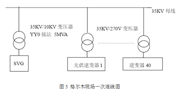 動態(tài)無功補(bǔ)償裝置一臺,型號FGSVG-C5.0/10,經(jīng)過升壓10kV/35kV 升壓變壓器后掛接現(xiàn)場的35kV 電網(wǎng)。